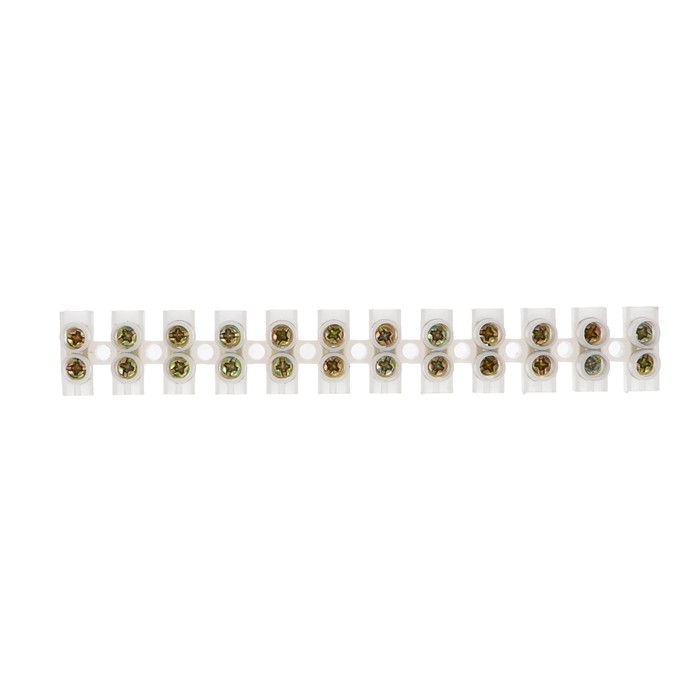 Клеммная колодка винтовая, 12 секций, 2,5-4 мм², 5 А, полиэтилен, белый, набор 10 шт.