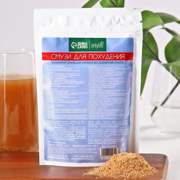 Смузи для похудения, отруби пшеничные, семена чиа, гуарана, гарциния, яблоко, 100 г.