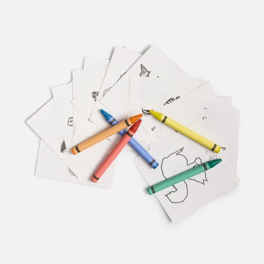 В комплекте 5 цветных восковых мелков и 20 листов с картинками для раскрашивания.