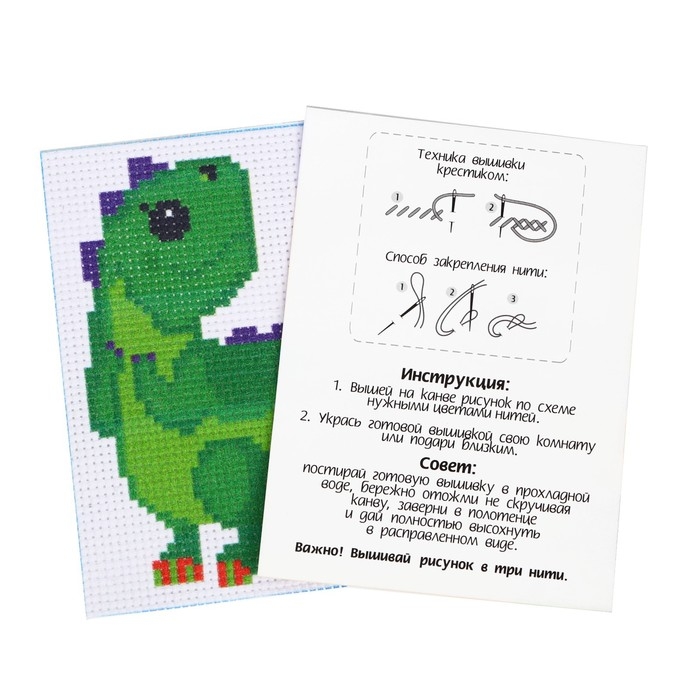 Вышивка крестиком для детей «Динозавр», набор для творчества, 14 х 10 см