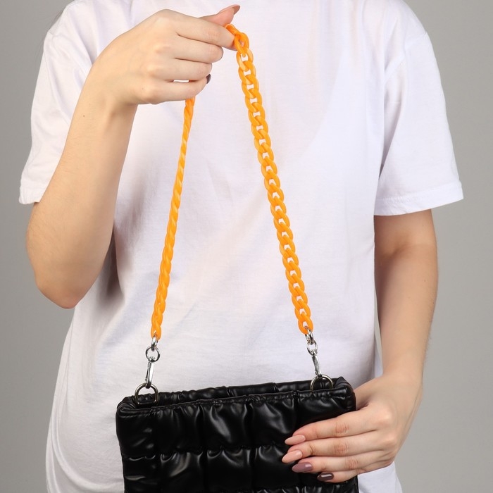 Цепочка для сумки, пластиковая, с карабинами, 23 × 17 мм, 68 см, цвет оранжевый/серебряный