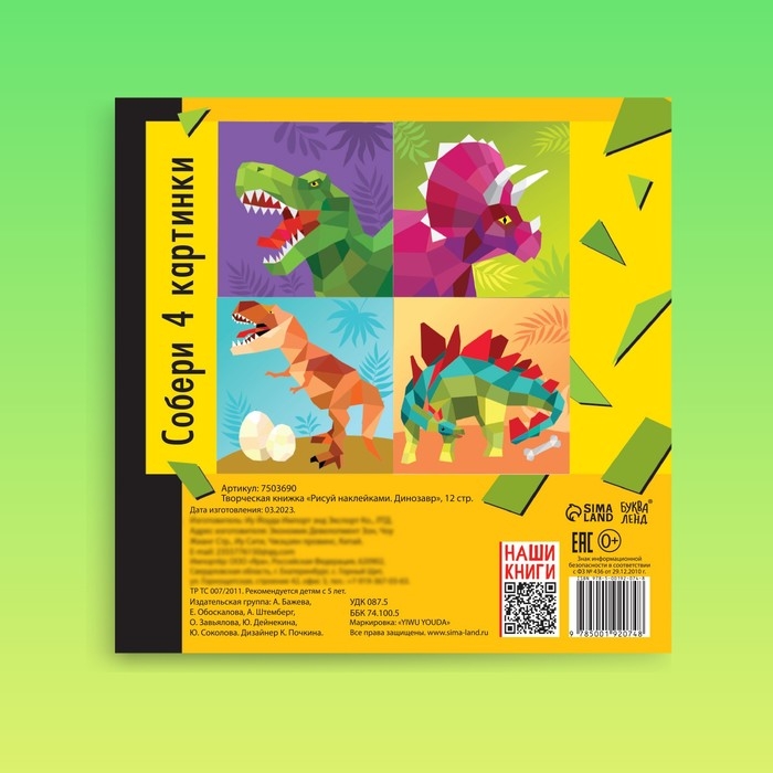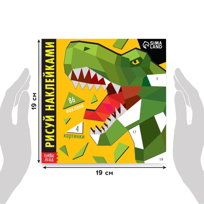 Творческая книжка «Рисуй наклейками. Динозавр», 12 стр., 4 картинки, 86 наклеек