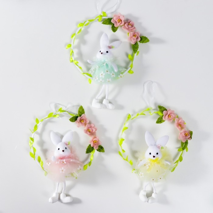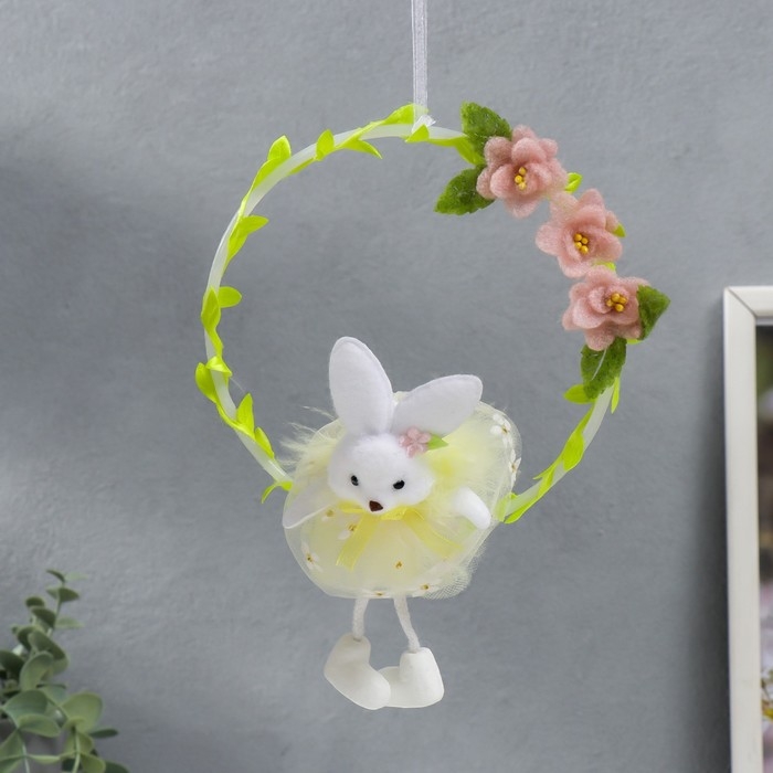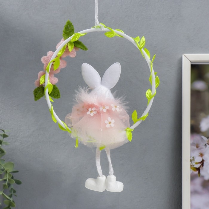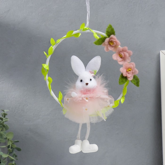 Сувенир подвес "Зайка на веночке с цветами" МИКС 15х21 см