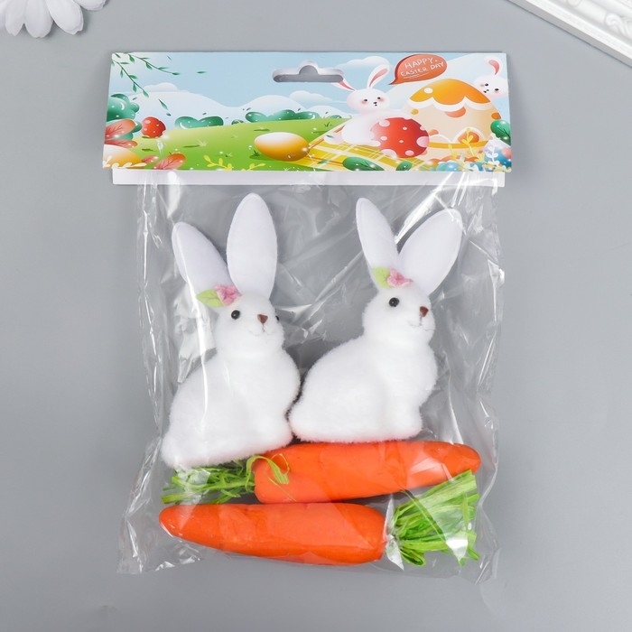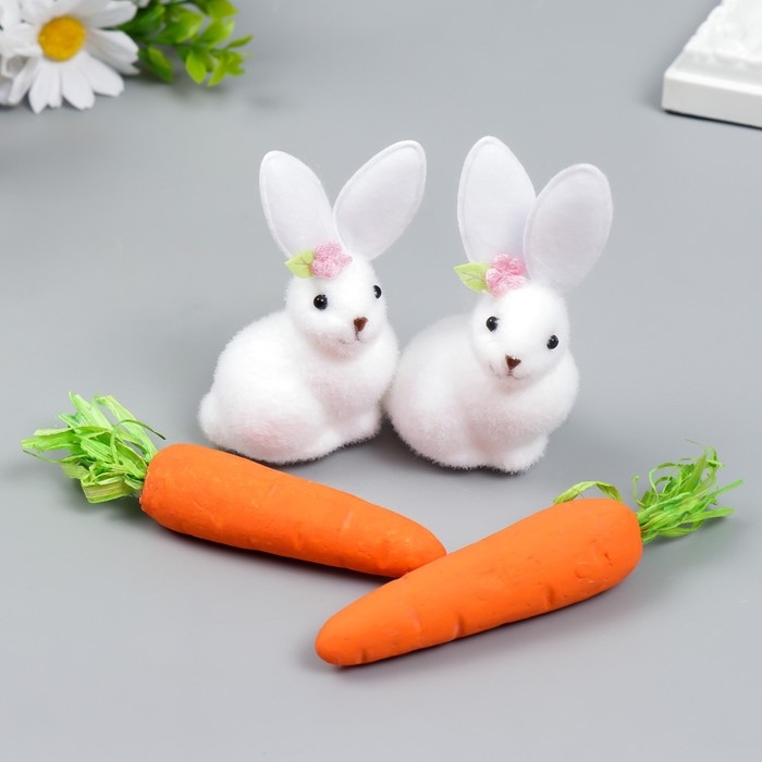 Сувенир "Зайчонок с морковкой" набор 4 шт 15х18 см МИКС