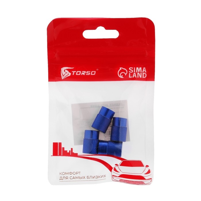 Колпачок на вентиль TORSO, синий, набор 4 шт