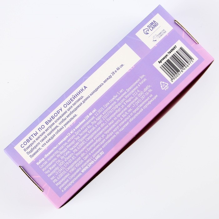 Набор для собак сделан из капрона и оснащён надёжной пластиковой застёжкой фастекс, что позволяет быстро надеть/снять ошейник. Устойчив к влажности и перепадам температуры. Ошейник практичен в применении, при загрязнении легко очищается. Поводок очень прочный, крепится к ошейнику металлическим карабином.