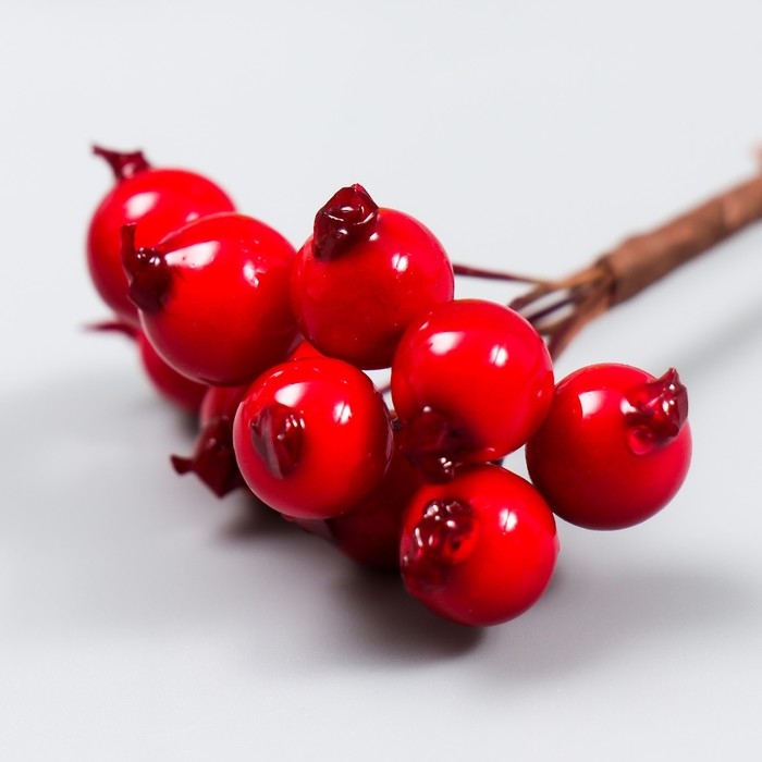 Декор для творчества "Ягодки красные" 1 букет=10 ягод d=1 см 10 см
