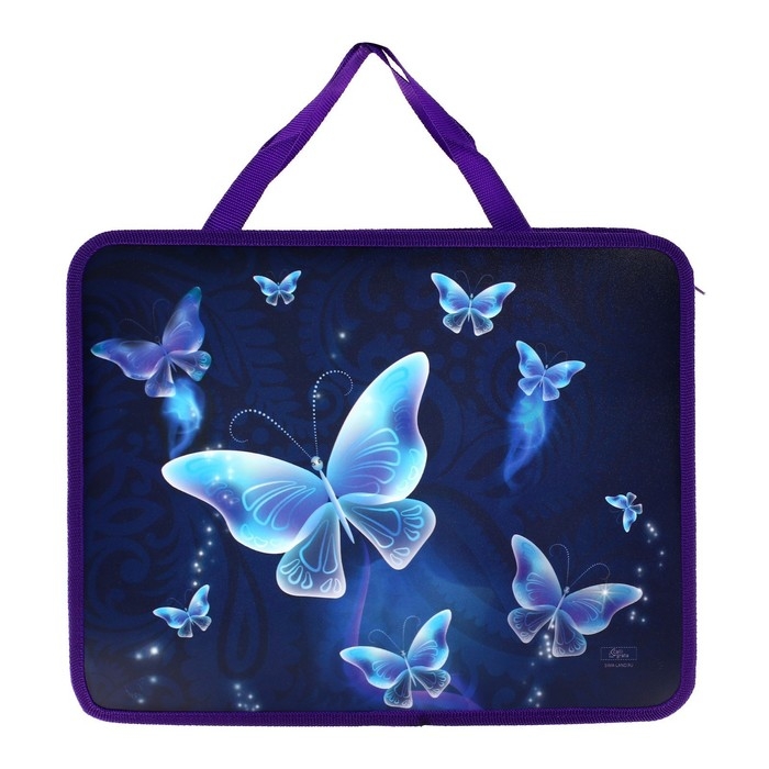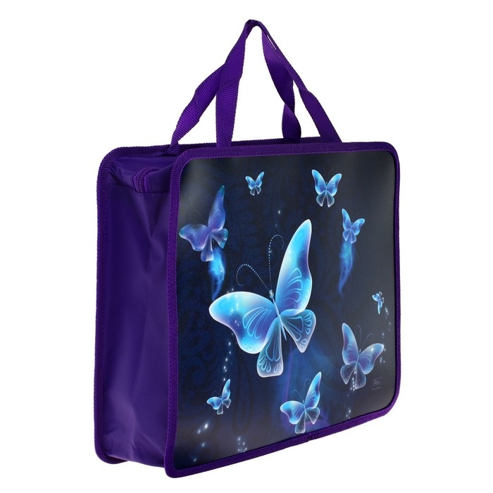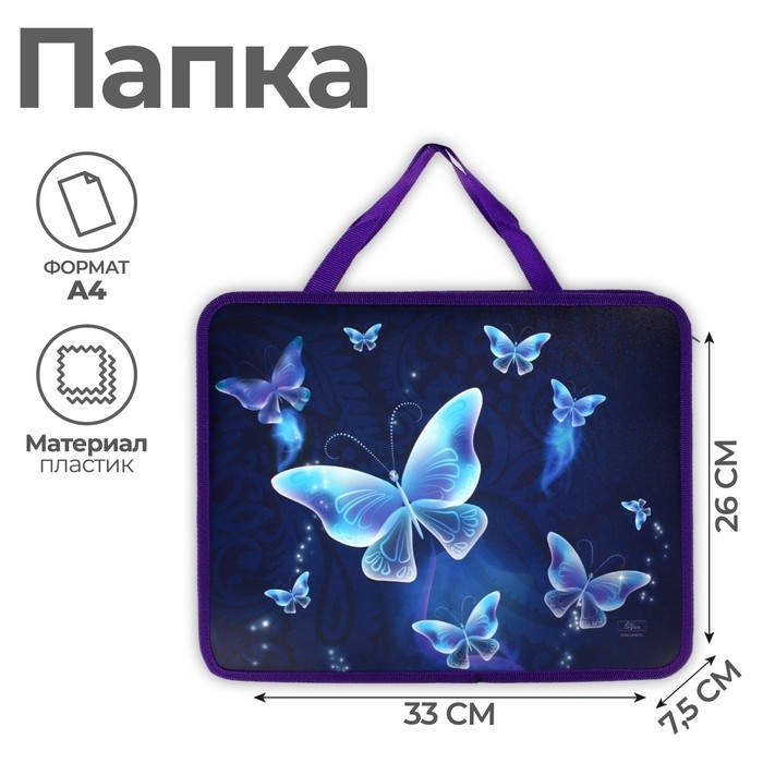 Папка с ручками А4, 330 х 260 х 75 мм, пластиковая, ручки-тесьма, Calligrata "Бабочки"
