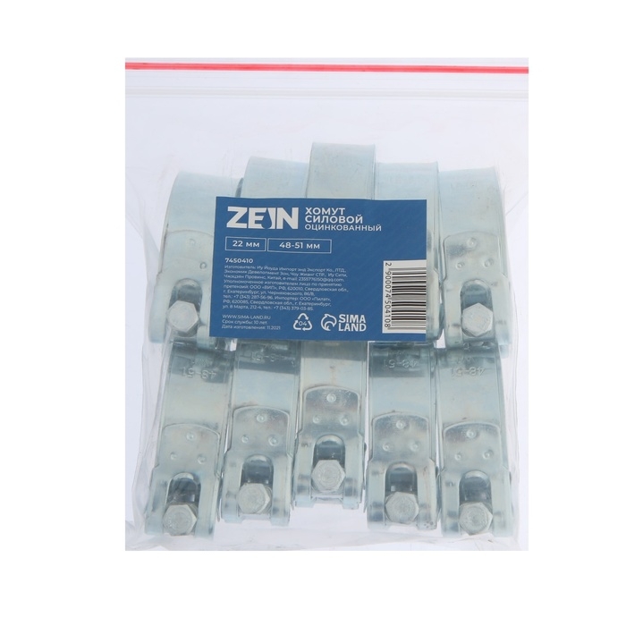 Хомут силовой ZEIN engr, диаметр 48-51 мм, ширина 22 мм, оцинкованный