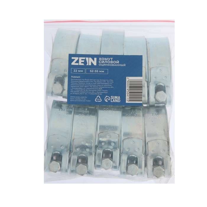 Хомут силовой ZEIN engr, диаметр 52-55 мм, ширина 22 мм, оцинкованный