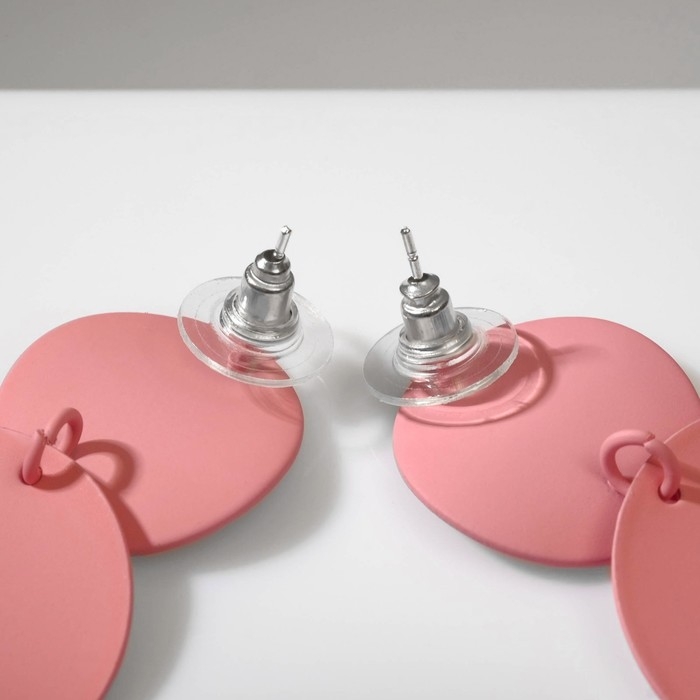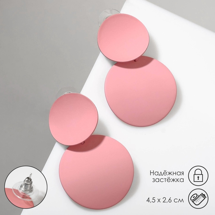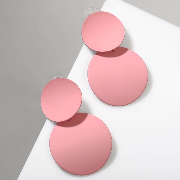 Серьги металл «Леди» круги, дуо, цвет розовый