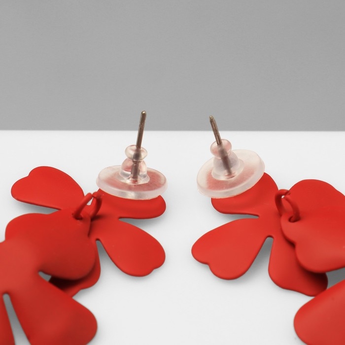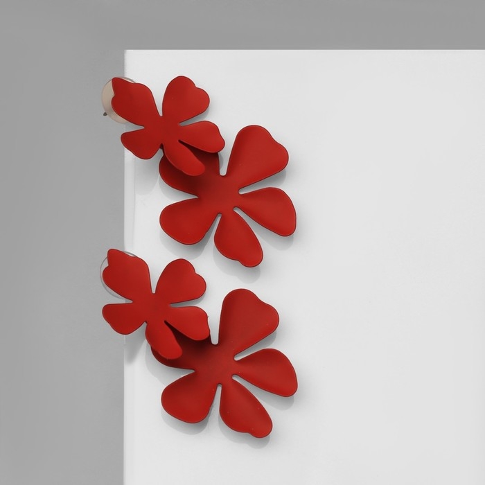 Серьги металл «Яркость» цветы, цвет красный