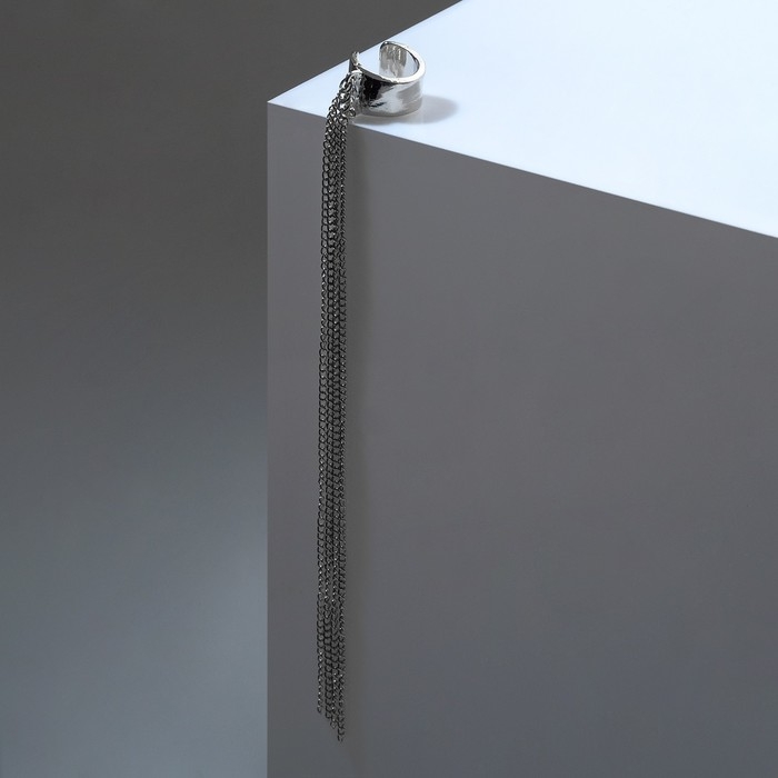 Серьга «Кафф» 4 цепочки, цвет серебро