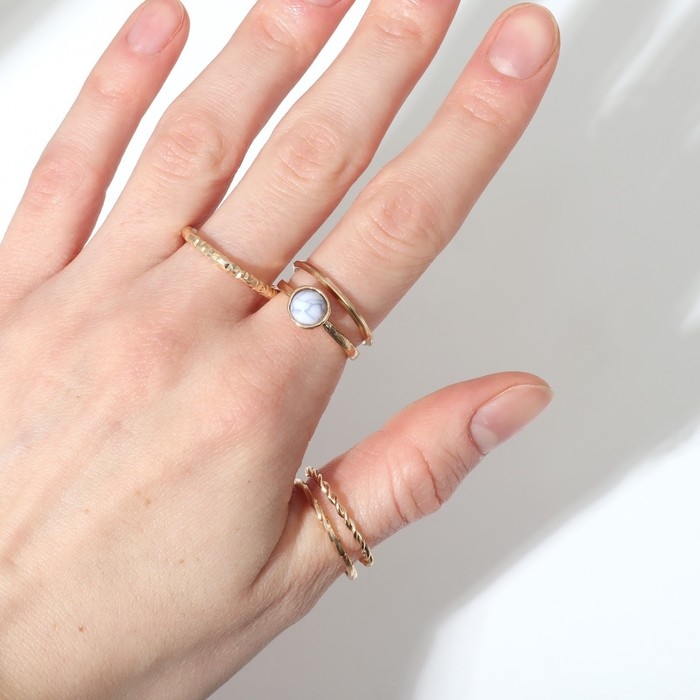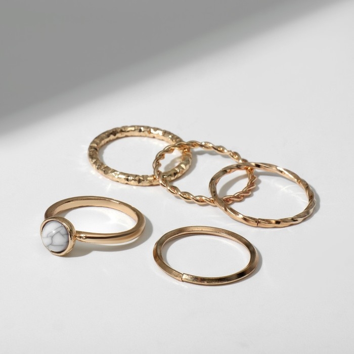 Кольцо набор 5 штук «Идеальные пальчики» венец, цвет белый в золоте