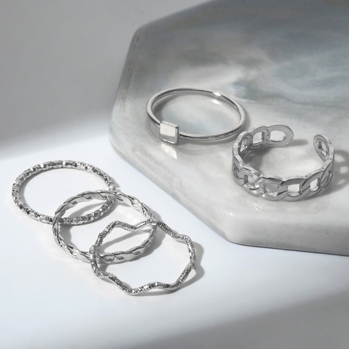 Кольцо набор 5 штук «Идеальные пальчики» геометрия, цвет белый в серебре