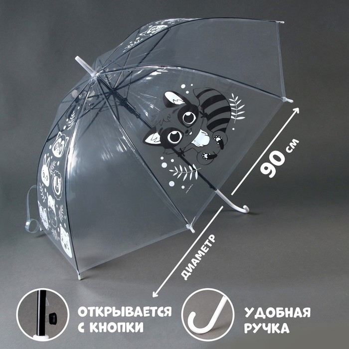 Зонт детский «Енотик» полуавтомат прозрачный, d=90см
