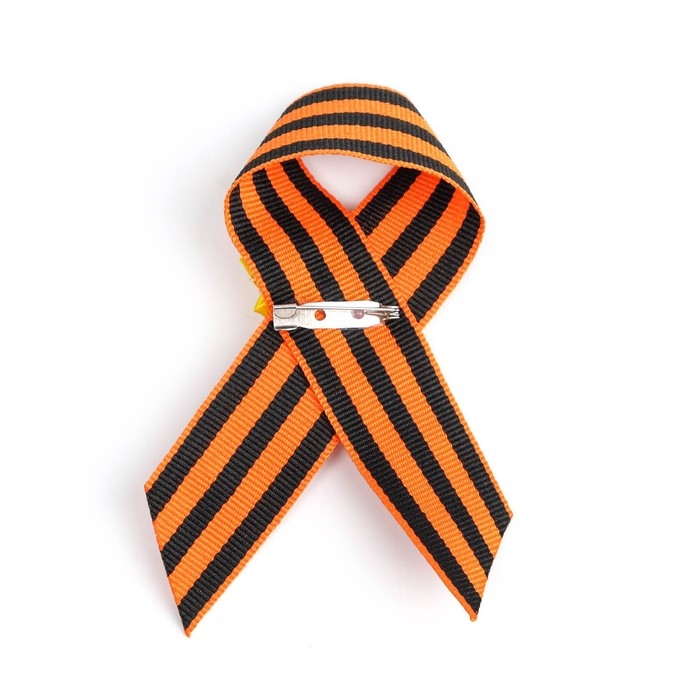 Брошь - георгиевская лента "9 мая - Вечный огонь", жёлтый цветок