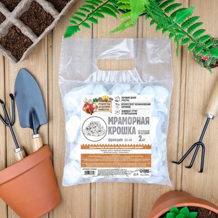 Мраморная крошка "Рецепты Дедушки Никиты", отборная, белая, фр 20-40 мм , 2 кг