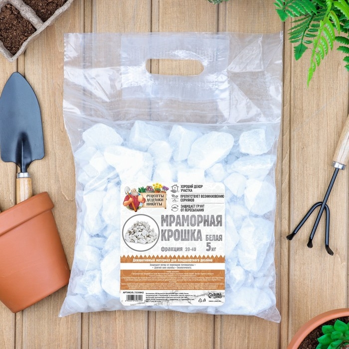 Мраморная крошка "Рецепты Дедушки Никиты", отборная, белая, фр 20-40 мм , 5 кг