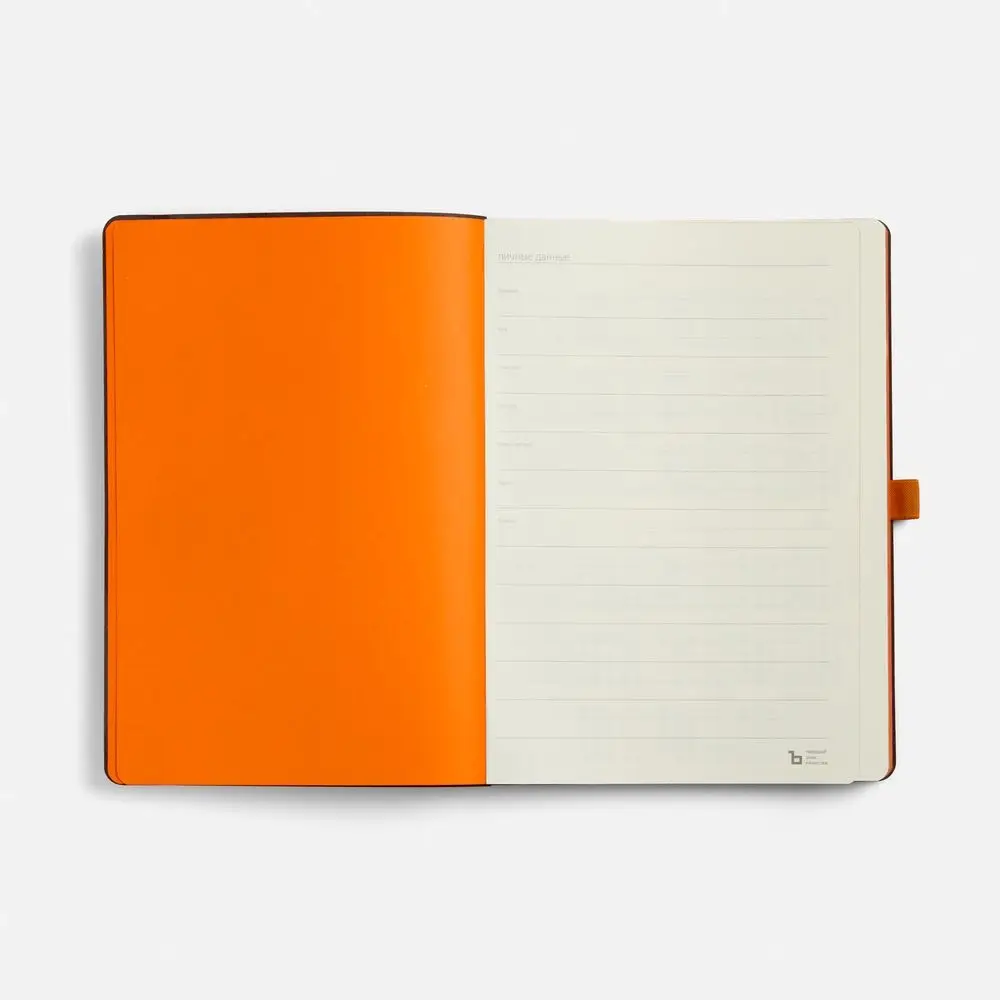 Ежедневник с гибкой обложкой, выполнен из материала Nice Touch, оранжевый ОО, дополнен цветными ляссе и петлей-резинкой для ручки.