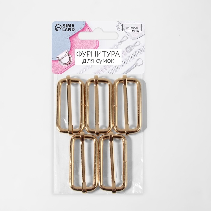 Пряжка регулирующая, внутренняя ширина - 38 мм, толщина - 3,5 мм, 5 шт, цвет золотой