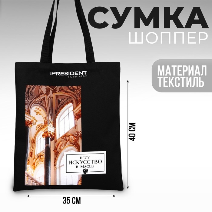 Сумка шоппер Putin team, 35 х 40 х 0.5 см, чёрная