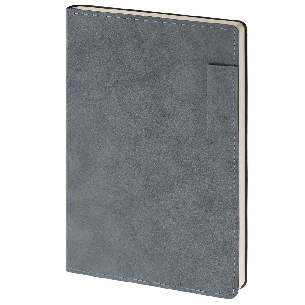 Ежедневник с гибкой обложкой, выполнен из материала Nubuck, темно-серый ЕЕ, дополнен петлей-лейблом для ручки и ляссе в цвет материала.