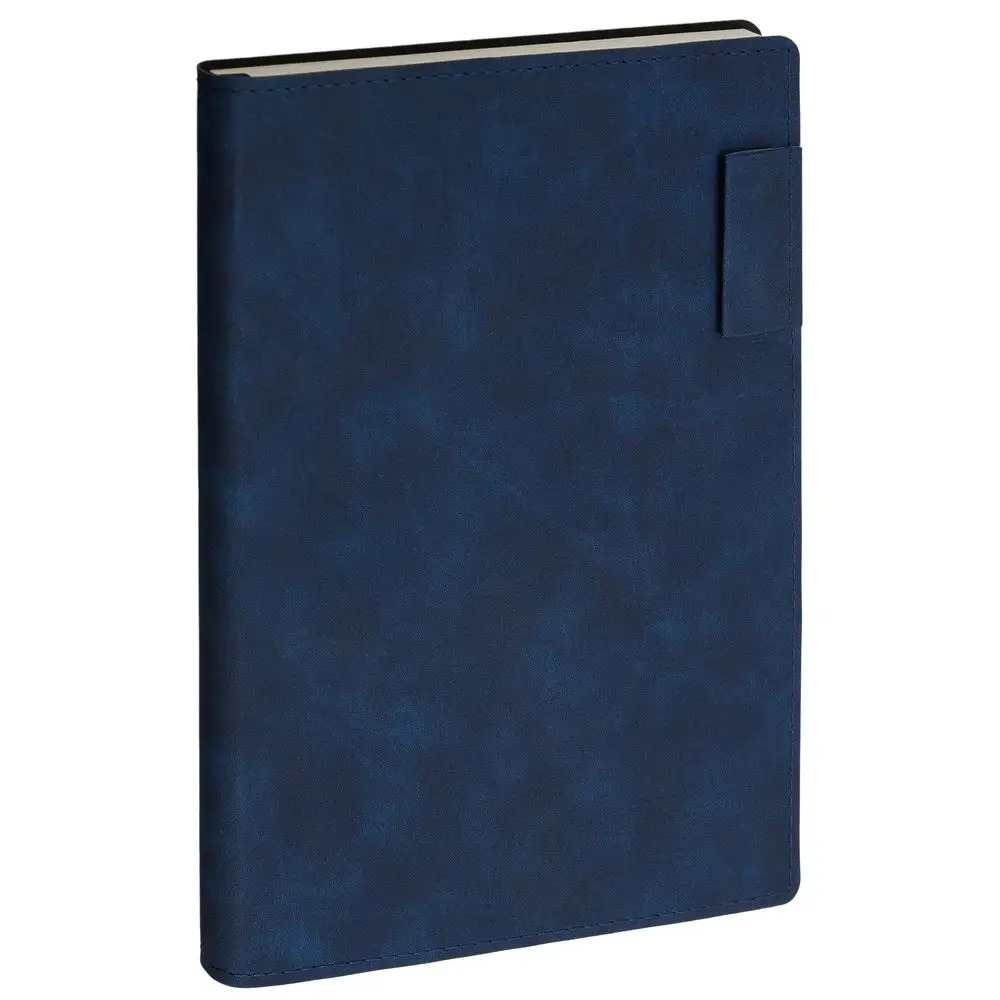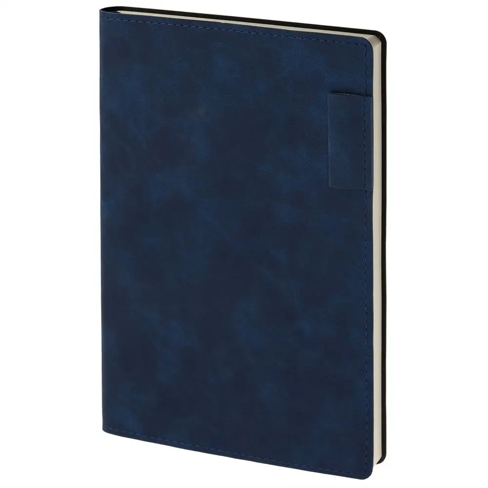 Ежедневник 17х24 см, с гибкой обложкой, выполнен из материала Nubuck Touch, темно-синий ХХ, дополнен петлей-лейблом для ручки и двойным ляссе в цвет материала.