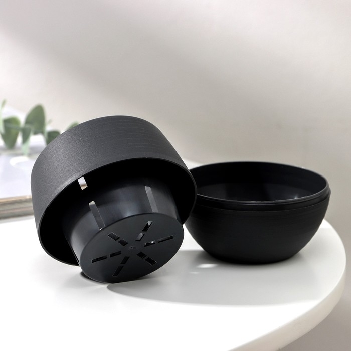 Горшок для цветов с поддоном «Япония», 125 мл, d=8 см, h=6,5 см, цвет графитовый