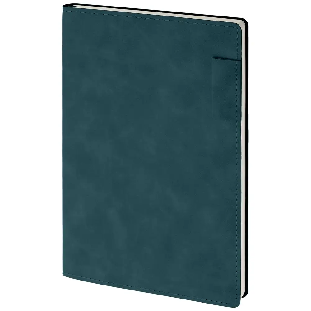 Ежедневник 17х24 см, с гибкой обложкой, выполнен из материала Nubuck Touch, темно-зеленый VV, дополнен петлей-лейблом для ручки и двойным ляссе в цвет материала.