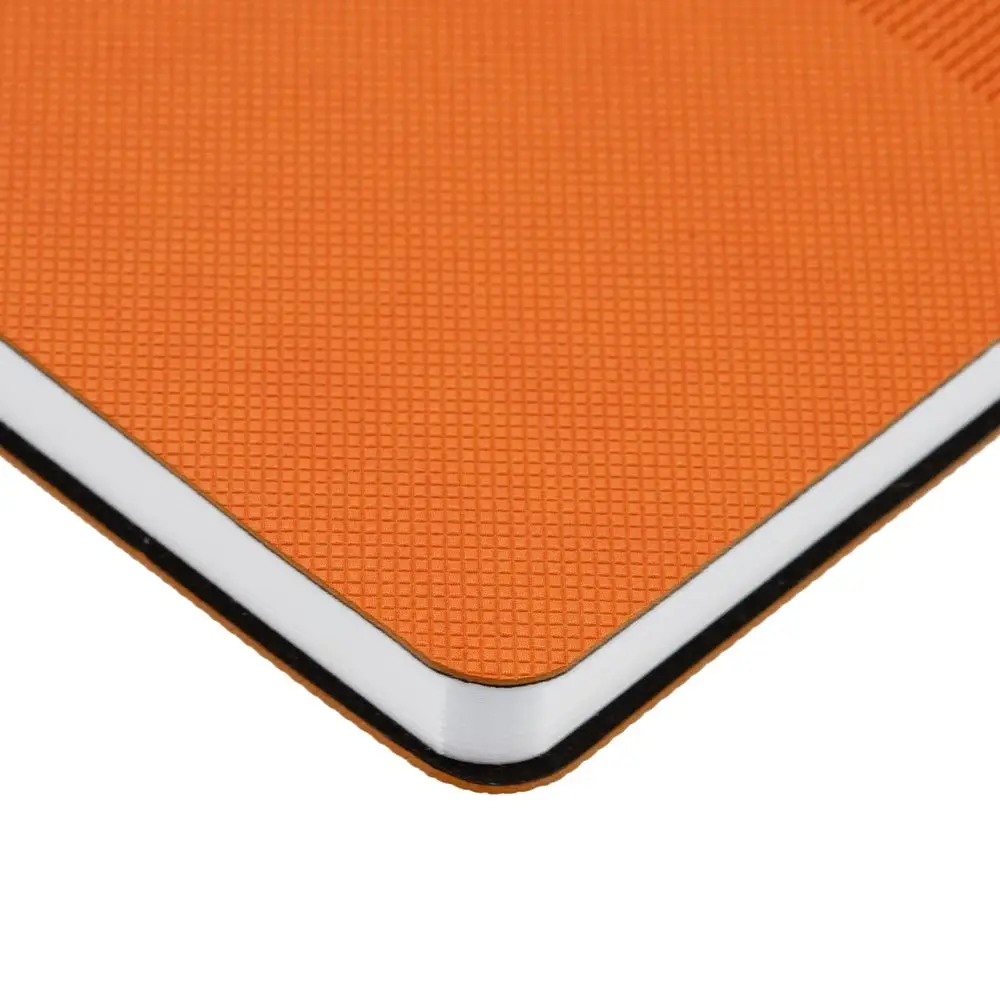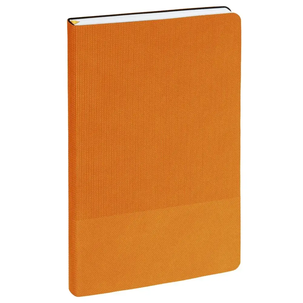 Ежедневник с гибкой обложкой, выполнен из материала Canyon, оранжевый ОО, дополнен ляссе в цвет обложки. Блинтовое тиснение на обложке создает эффект вязаного полотна.