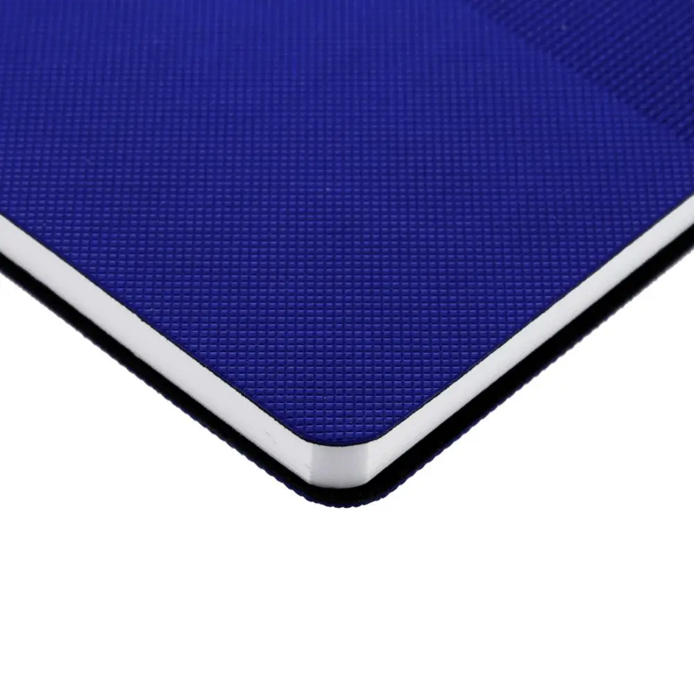 Ежедневник с гибкой обложкой, выполнен из материала Canyon, синий НН, дополнен ляссе в цвет обложки. Блинтовое тиснение на обложке создает эффект вязаного полотна.