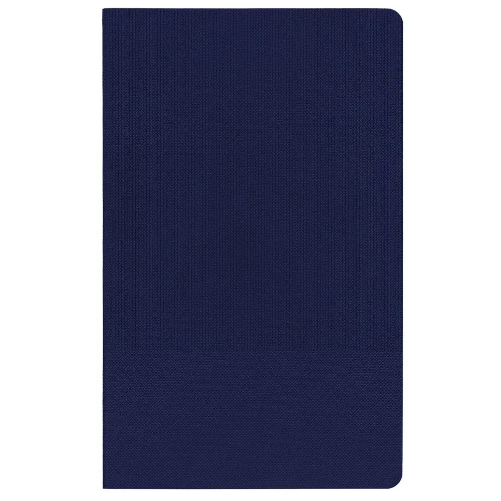 Ежедневник с гибкой обложкой, выполнен из материала Canyon, темно-синий ХХ, дополнен ляссе в цвет обложки. Блинтовое тиснение на обложке создает эффект вязаного полотна.