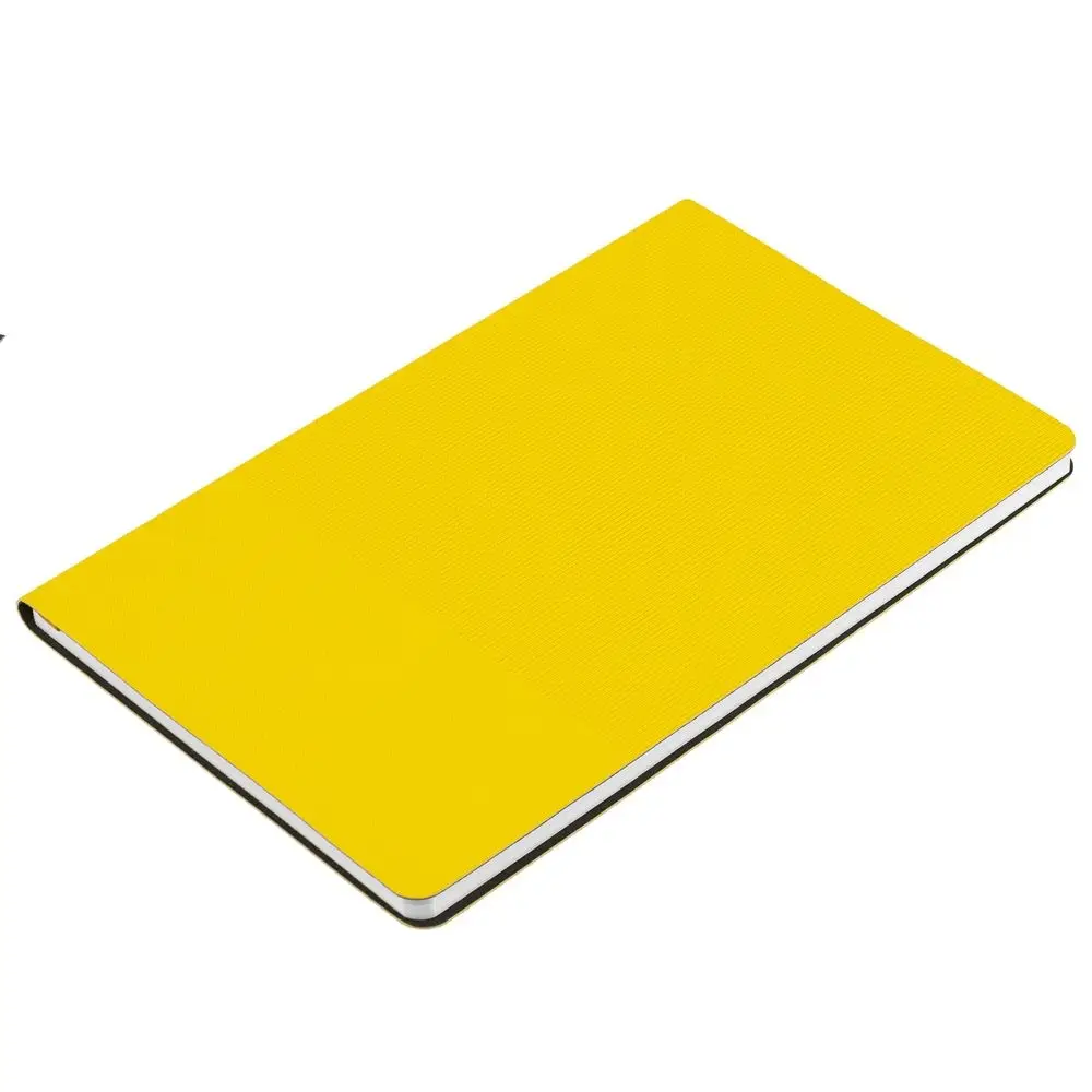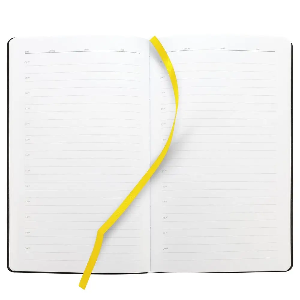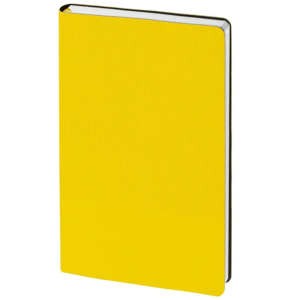 Ежедневник с гибкой обложкой, выполнен из материала Canyon, желтый КК, дополнен ляссе в цвет обложки. Блинтовое тиснение на обложке создает эффект вязаного полотна.