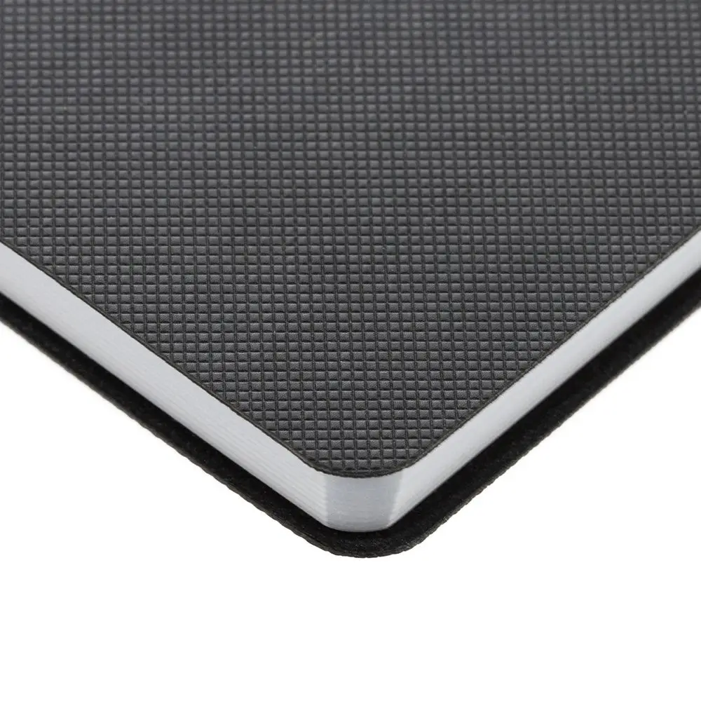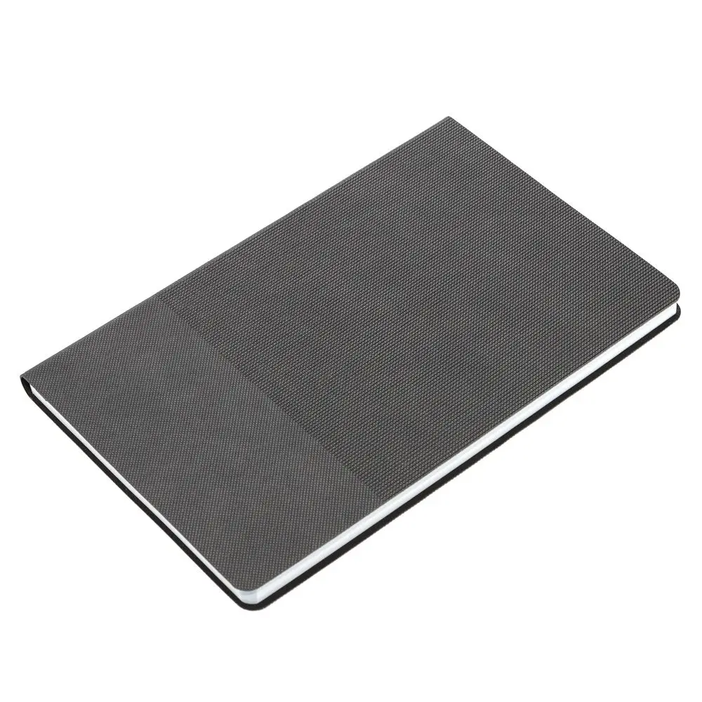 Ежедневник с гибкой обложкой, выполнен из материала Canyon, темно-серый ЕЕ, дополнен ляссе в цвет обложки. Блинтовое тиснение на обложке создает эффект вязаного полотна.