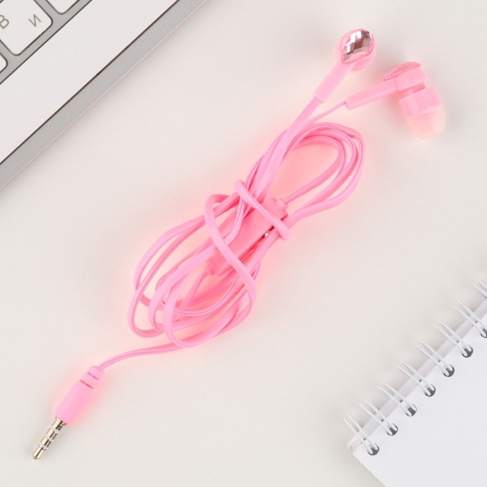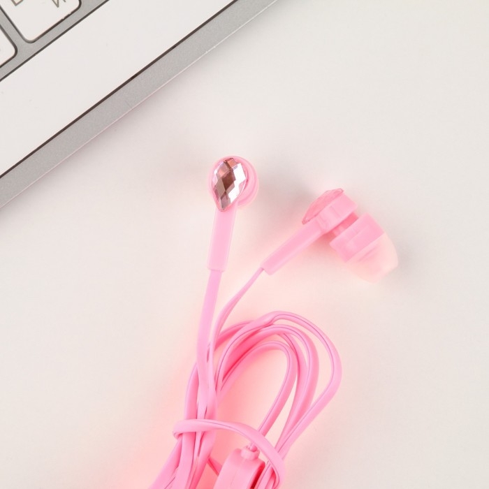 Наушники вакуумные со стразами, розовые