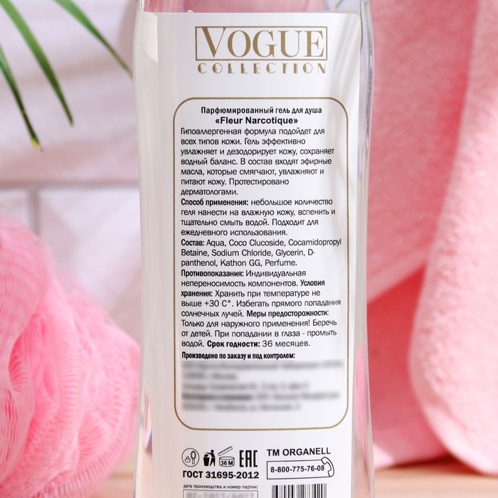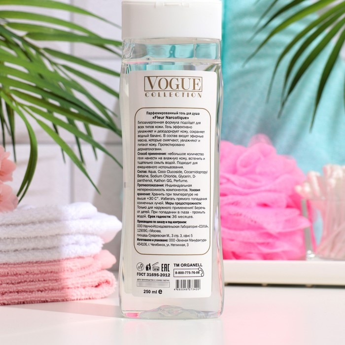 Гель для душа женский парфюмированный ORGANELL персик, личи, бергамот, пион, жасмин, 250 мл