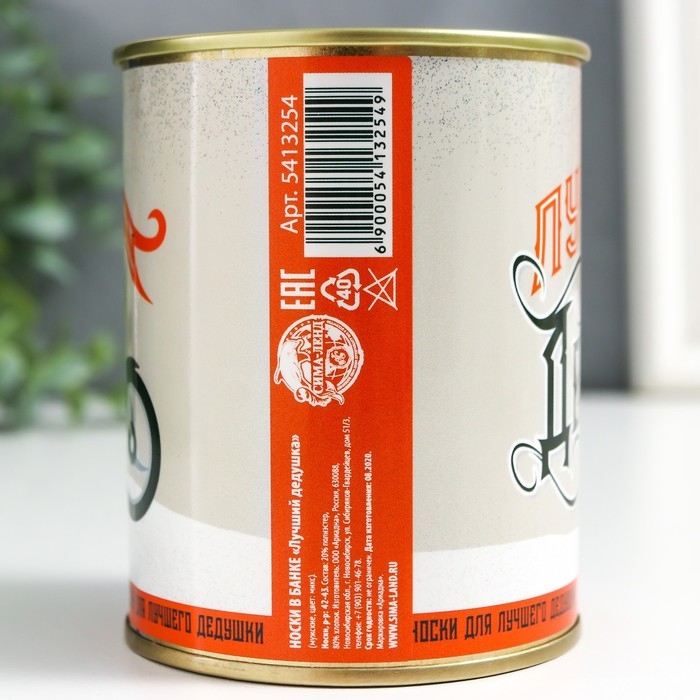Носки в банке "Лучший дедушка" (внутри носки мужские, цвет чёрный)