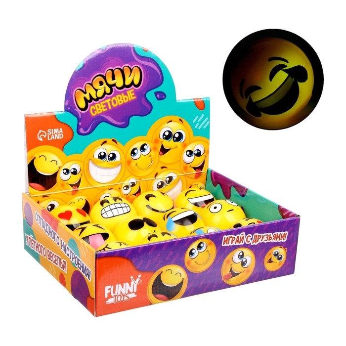Мяч детский резиновый световой «Смайлы», МИКС, в шоубоксе