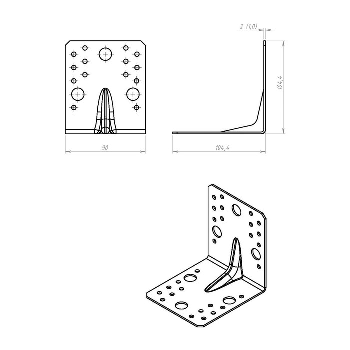 Уголок крепёжный усиленный 105 х 105 х 90 х 2 мм, ГОЦ, мелкая фасовка