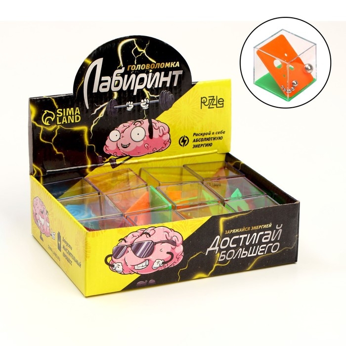Головоломка «Достигай большего» представляет собой прозрачный куб с маленьким шариком внутри. Задача игрока — провести шарик от старта до финиша, преодолевая извилистые пути и препятствия. Игра способствует развитию мелкой моторики, логического мышления и концентрации внимания. Лабиринт выполнен в ярких цветах, что привлекает внимание и делает процесс игры увлекательным.