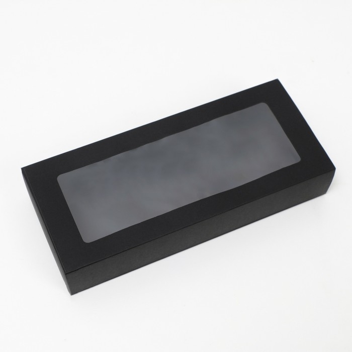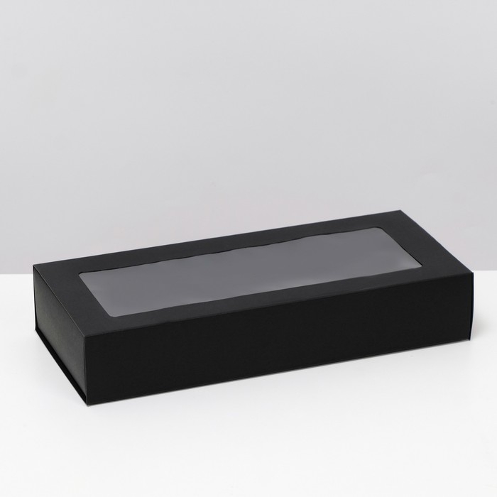 Коробка подарочная складная, упаковка, «Чёрная», с окном 21 х 15 х 7 см