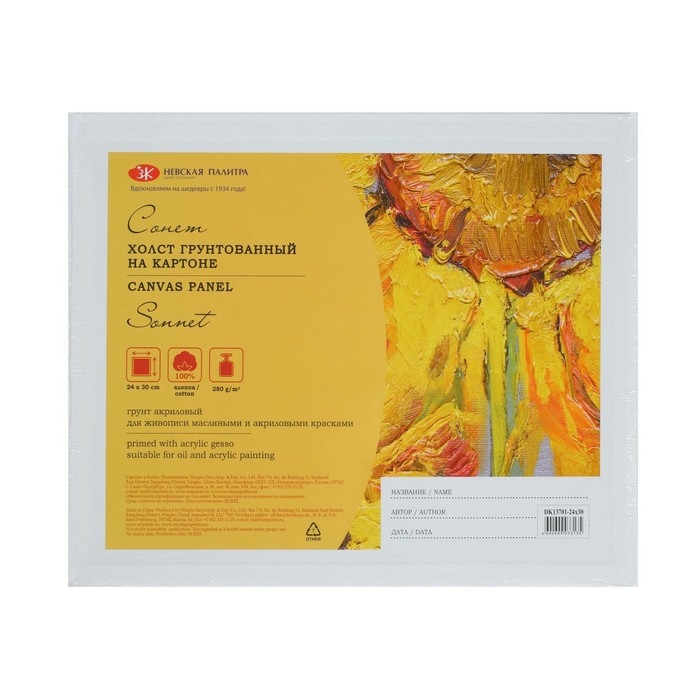 Холст на картоне 24 х 30 см, 100% хлопок, 280 г/м2, мелкое зерно