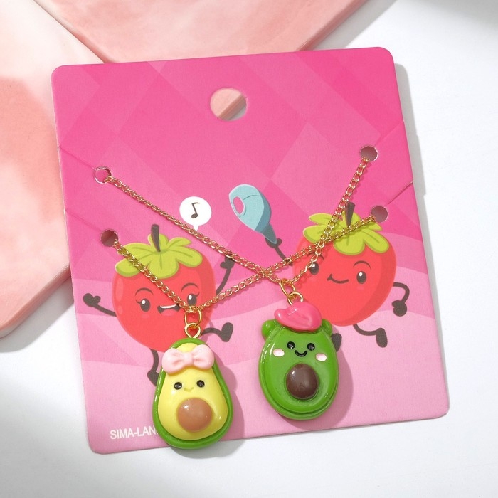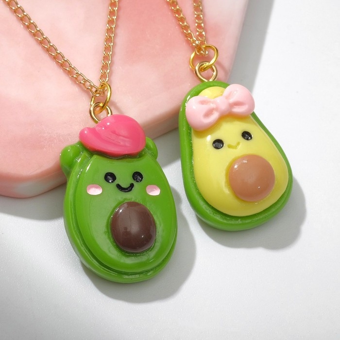 Кулоны неразлучники «Выбражулька» авокадо, мальчик и девочка, цветные в золоте