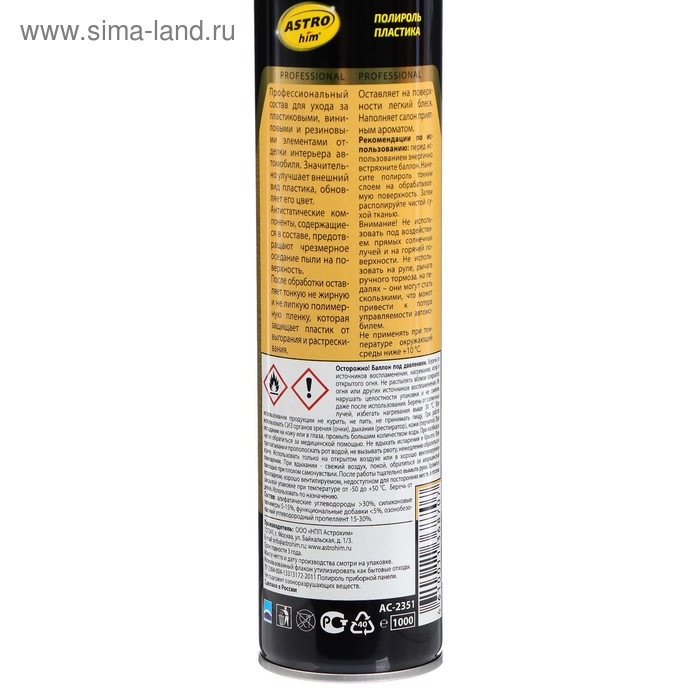 Полироль пластика Astrohim Ваниль, 1 л, аэрозоль, AС - 2351