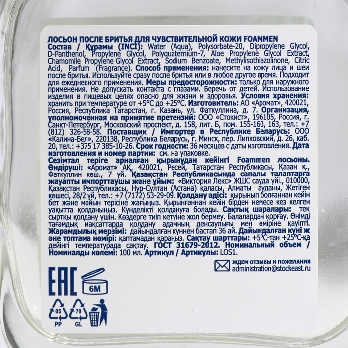Лосьон после бритья Foammen для чувствительной кожи, 100 мл