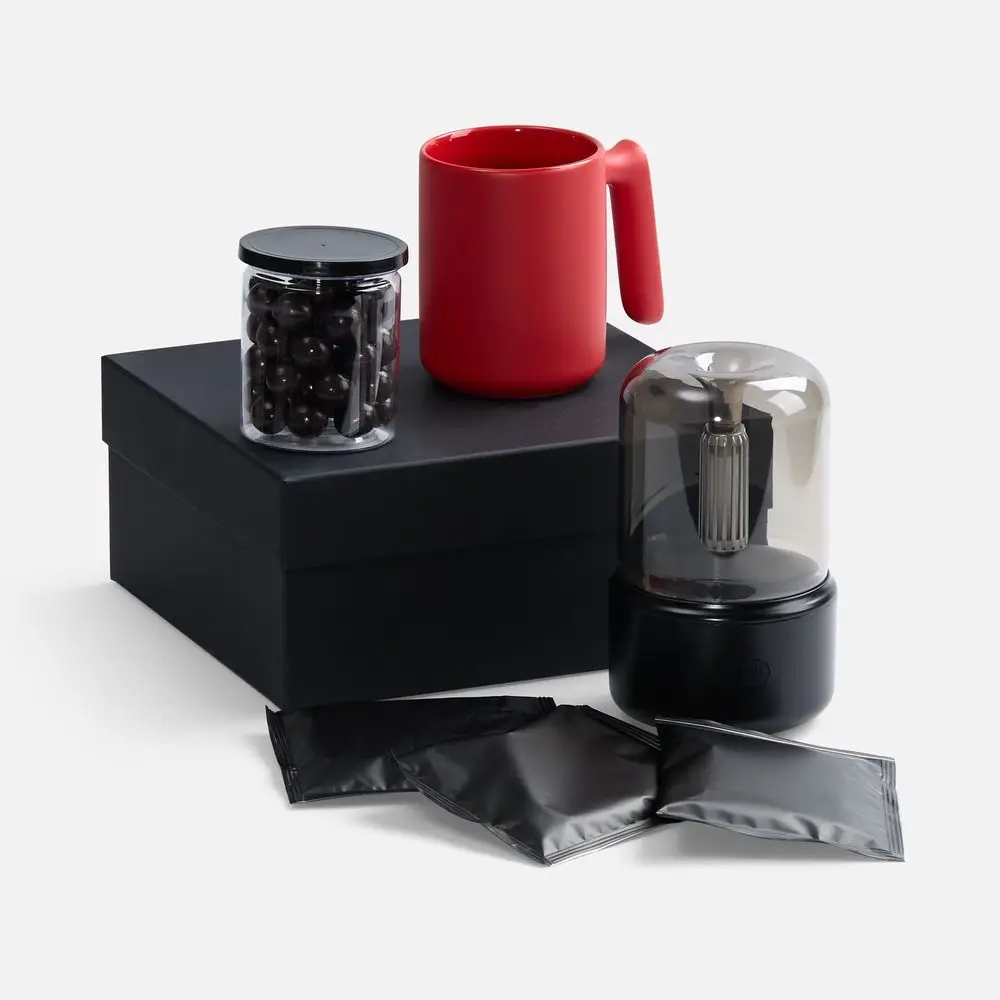 Набор «Микроклимат» создаст идеальную атмосферу — для бодрости или расслабления! Увлажнитель смягчит воздух, поможет снять усталость и мыслить ясно. В удобной керамической кружке Visari любимый напиток будет дольше оставаться теплым, дрип-пакеты позволят легко приготовить вкусный кофе без лишних устройств, а фундук в шоколаде станет изящным завершением настоящего ритуала наслаждения.
