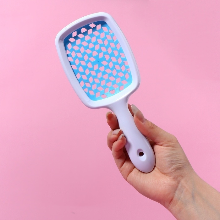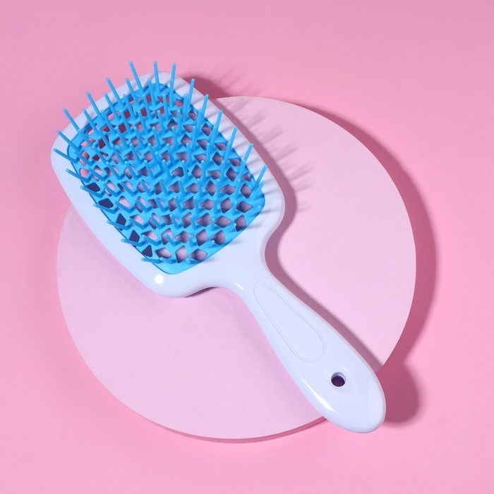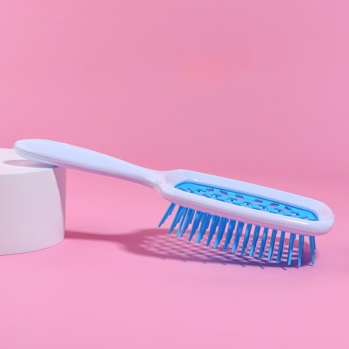 Расчёска массажная, вентилируемая, 6,5 × 23,5 см, цвет белый/голубой