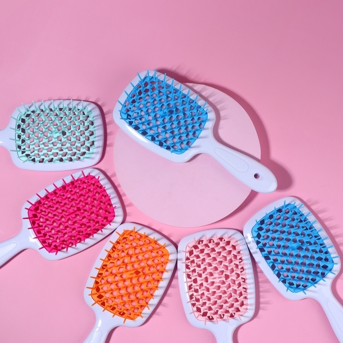 Расчёска массажная, широкая, вентилируемая, 8,5 × 20,5 см, PVC коробка, цвет МИКС/белый
