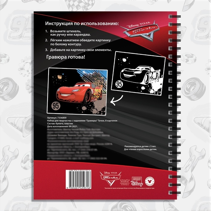 Набор для творчества с заданиями «Гравюры. Тачки», 8 гравюр, Дисней